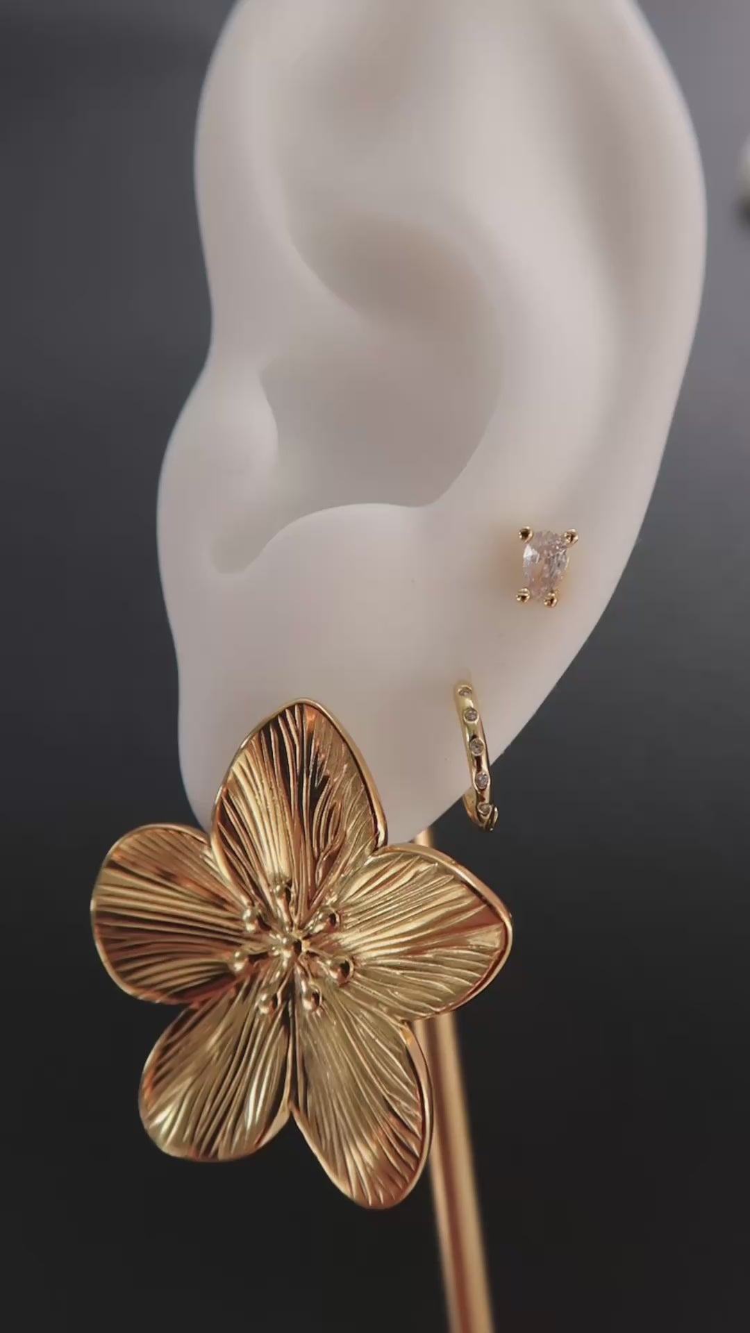 Introducing Evelyn, the epitome of luxury with its statement flower studs in gold. Add a touch of elegance to any outfit with these exquisite earrings. Made with expert craftsmanship, Evelyn is sure to make a sophisticated statement.