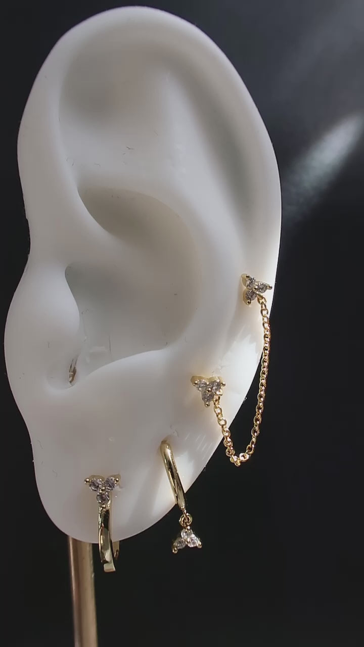 This is absolutely the most adorable set ever! Featuring mini clear cubic zirconia stones and a thin, gold double chain for piercings, this set has a chill yet expensive vibe without the hefty price tag. Perfect for summer, this dainty set adds a touch of playfulness to any look.